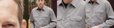 6.05 oz./yd² / 205 gsm, 100% cotton twill with Teflon™; Button-down collar with structured collar stand; DTM buttons; Two-button adjustable cuffs;