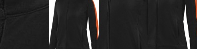 - 100% polyester knit bonded to a water-resistant film insert and a 100% polyester microfleece lining at side panels and under arms