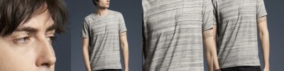 • Single-needle topstitched front neck with ½” rib v-neck collar