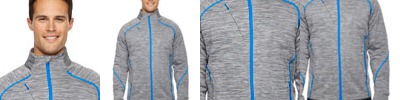 bonded with 100% polyester microfleece, 7.4 oz./yd2/; 100% polyester mlange jersey; inside storm placket with chin guard; contrast center front reverse coil zipper ; stretch storm cuffs with thumb holes; chest pocket with contrast invisible zipper; lower pockets with contrast reverse coil zippers; contrast coverstitch details; audio port access through inside left pocket; adjustable shockcord at hem;