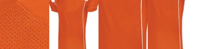 - 90/10 polyester/spandex neck and cuffs for added stretch and better fit over pads