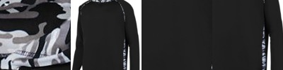 - 100% polyester printed wicking knit side inserts, piping and hood lining features mod camo print