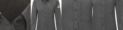 7.1 oz/yd² / 240 gsm, 91% polyester, 9% spandex jersey; Moisture wicking; UV protection; Self fabric collar with integrated collar stand and built-in collar stays; Side vents; Luxury, comfort and performance in one; 5-button placket with dyed-to-match buttons; Narrow placket for feminine look; Curved back yoke with center pleat;