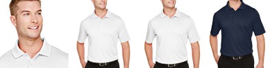 3.5 oz/yd2 / 130 gsm, 100% polyester interlock; Moisture-wicking and UV protection performance; Cationic dyes for superior brightness and color fastness; Two-button placket; Integrated collar stays; Dyed-to-match buttons; Tear away label;