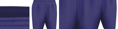 6 oz. 100% polyester; Elastic waistband with black drawcord; Faux fly; Knee piping; Back pocket; Side zipper pockets; Hem cuffs;
