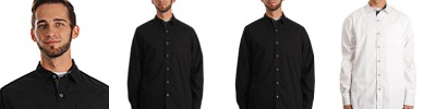 3.7 oz., 100% cotton; chambray lined collar & cuff; Left-chest pocket; Chainstitching on bottom hem; Half back yoke; Black neck taping; Modern fit;