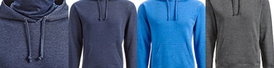 7.5 oz., 55% cotton, 45% polyester fleece; Built-in double-layer soft Jersey gaiter; Set-on pouch pocket; Tear-away label; Gaiter does not meet N95 mask standards; No guarantee item will protect user from any illness;