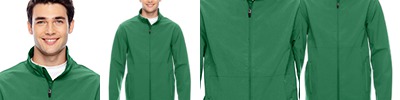 8.8 oz., 96% polyester, 4% spandex three-layer breathable soft shell; waterproof and windproof membrane 3,000 mm waterproof rating and 1,000 g breathability; wind- and water-resistent; center front dyed-to-match reverse coil zipper with semi-autolock rubber pull tab and chin guard; zippered front welt pockets; open hem cuffs ; double-needle stitching at hem and cuffs; open hem with drop back bottom;
