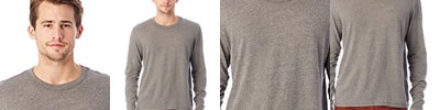 The long sleeve version of our perfectly soft and comfortable crew. 4.5-ounce, 50/25/25 poly/ring spun combed cotton/rayon, 32 singles Tear-away tag 1x1 rib knit cuffs Tri-Blend fabric infuses each garment with unique character. Please allow for slight color variations. Due to the heat sensitivity of tri-blend fabrics, special care must be taken throughout the printing process. Consult your decorator or ink supplier for best printing practices.